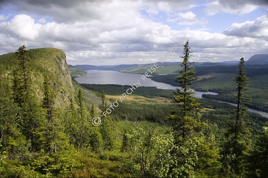 Berg, Bergkette, Bergmassiv, Felsen, Felswand, Gebirge, Gewässer, Gäddede, Jämtland, Landschaft, Material, Schweden, See, Stein, Wald,
