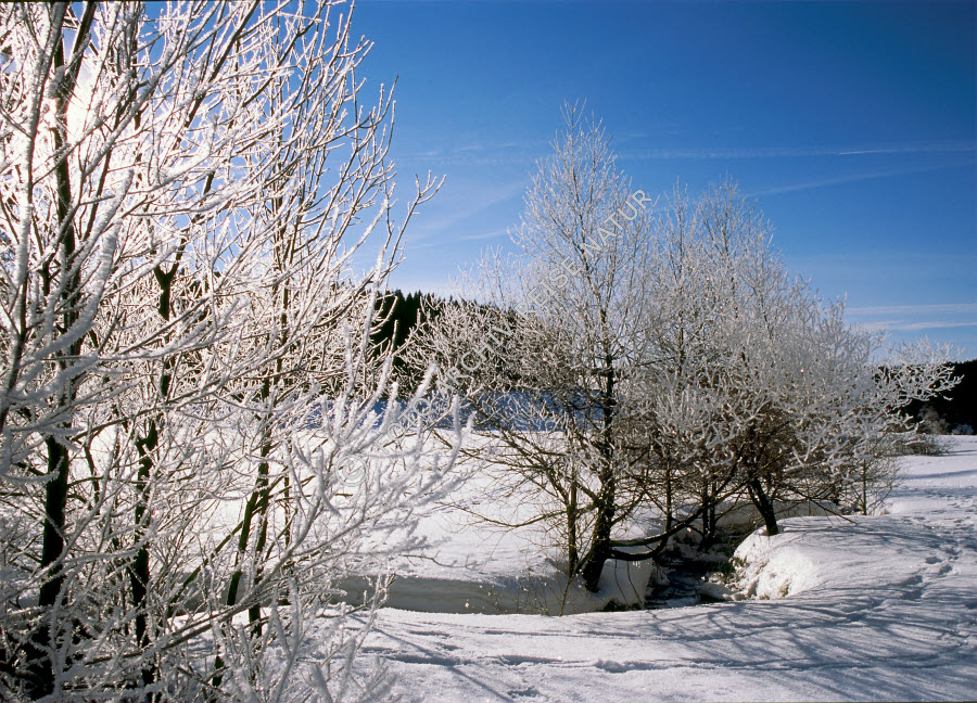 Keywords: Bach, Baden-Württemberg, Baum, Deutschland, Farbe, Flora, Gewässer, Gutachquelle, Landschaft, Niederschlag, Rauhreif, Schnee, Schwarzwald, Schönwald, Strauch, Weiden, Salix, Weidengewächs, Wetter, Klima, weiß,