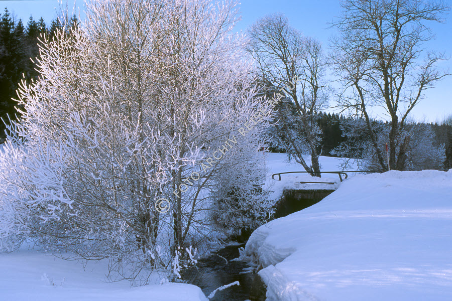 Bach, Baden-Württemberg, Baum, Deutschland, Farbe, Flora, Gewässer, Gutachquelle, Landschaft, Niederschlag, Rauhreif, Schnee, Schwarzwald, Schönwald, Strauch, Weiden, Salix, Weidengewächs, Wetter, Klima, weiß,