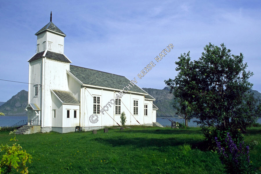 Keywords: Bauwerk, Gebäude, Gewässer, Gezeitenstrom, Gimsøy, Gimsøysand, Gymsøystraumen, Holzkirche, Kirche, Landschaft, Lofoten, Meeresströmung, Nordland, Norwegen, Sakralbau,