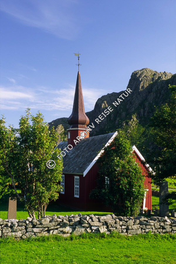Keywords: Bauwerk, Berg, Feldsteinmauer, Flakstad, Flakstadøy, Gebäude, Holzkirche, Kirche, Kulturlandschaft, Landschaft, Lofoten, Mauer, Natursteinmauer, Nordland, Norwegen, Rasen, Sakralbau, Wiese,