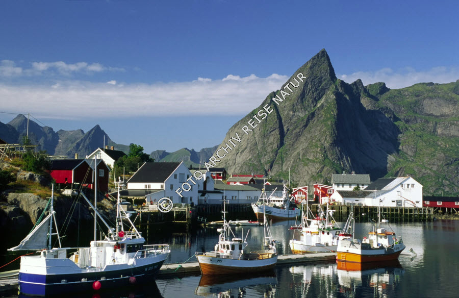 Fischereihafen Hamnøy mit Olstinden im Hintergrund