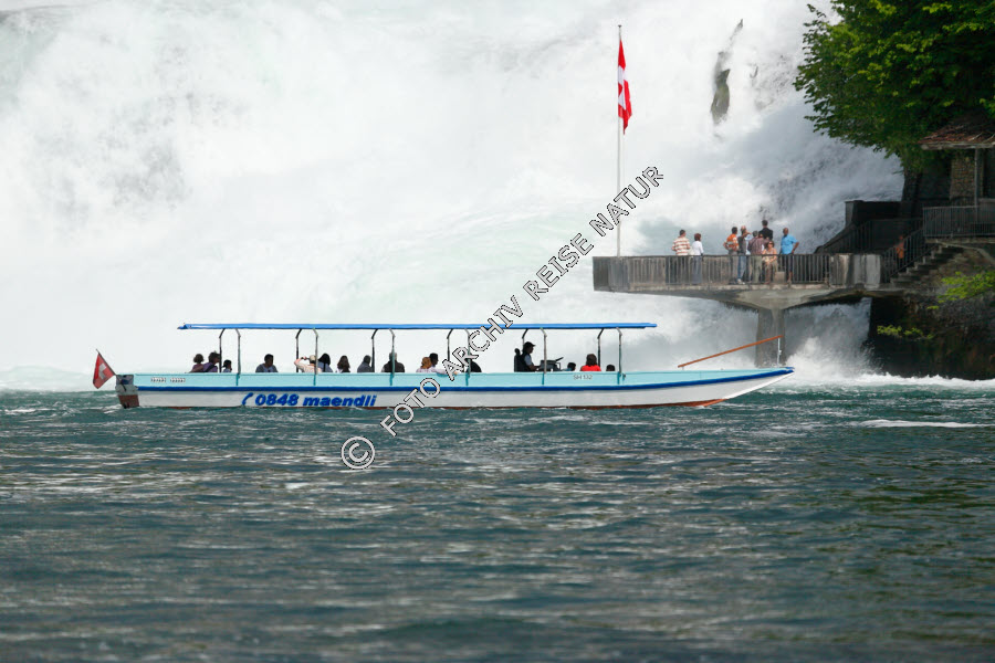 Tourboot vor dem Rheinfall und Aussichtsplattform