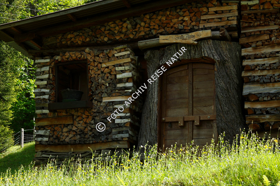 Alm, Bauwerk, Berghütte, Blockhaus, Brennholz, Flora, Gebäude, Gras, Haus, Holz, Holzhaus, Hütte, Kulturlandschaft, Material, Weide,