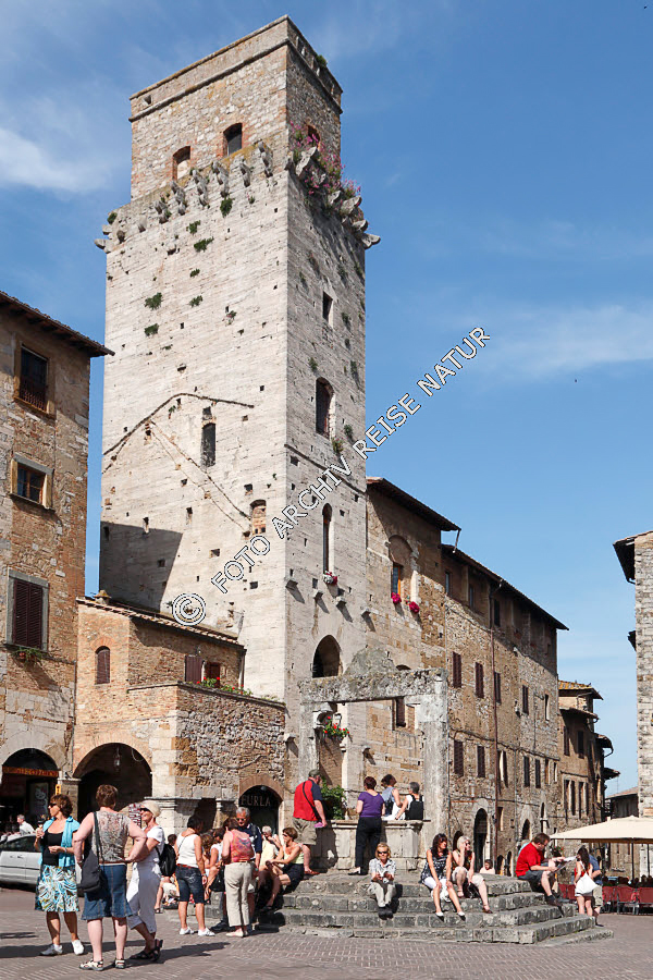 Altstadt, Bauwerk, Brunnen, Geschlechterturm, Italien, Kulturlandschaft, Platz, San Gimignano, Stadt, Toskana, Turm,