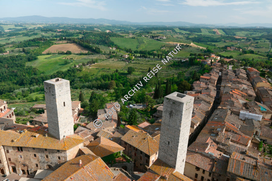 Altstadt, Bauwerk, Feld, Geschlechterturm, Hügel, Hügelland, Italien, Kulturlandschaft, Landschaft, San Gimignano, Stadt, Toskana, Turm,