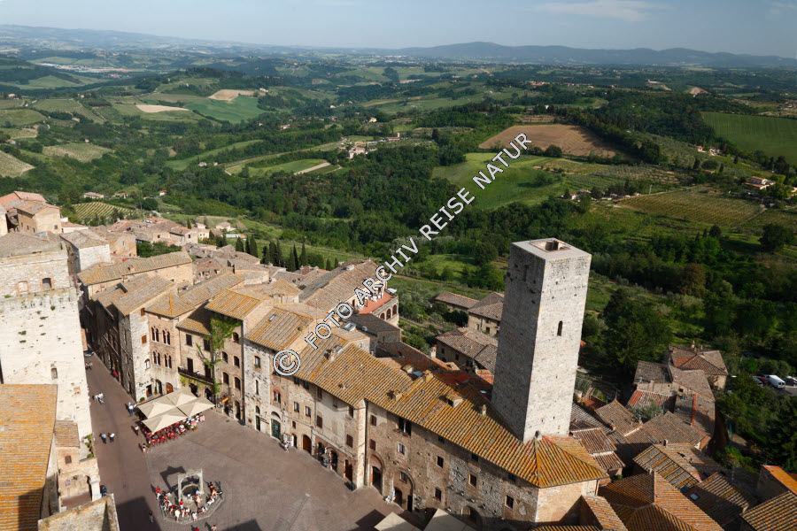 Altstadt, Bauwerk, Feld, Geschlechterturm, Hügel, Hügelland, Italien, Kulturlandschaft, Landschaft, San Gimignano, Stadt, Toskana, Turm,