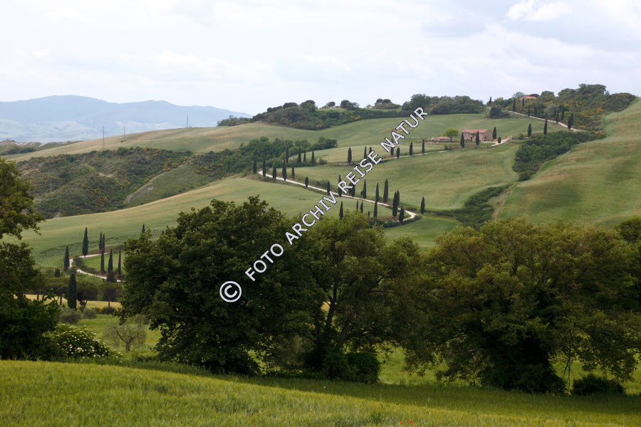 Baum, Flora, Hügel, Hügelland, Italien, Landschaft, Toskana, Val d' Orchia, Wiese, Wiesenhang,