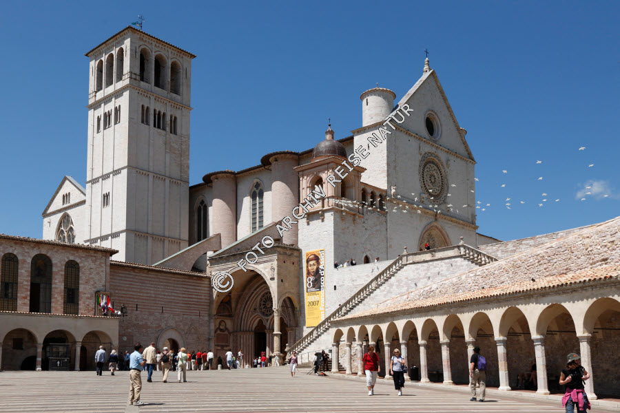 Abtei, Kloster, Assisi, Bauwerk, Gebäude, Italien, Kirchturm, Klosterkirche, Kreuzgang, Sakralbau, Turm, Umbrien,
