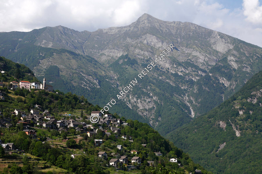 Mergoscia mit Pizzo di Vogorno im Hintergrund