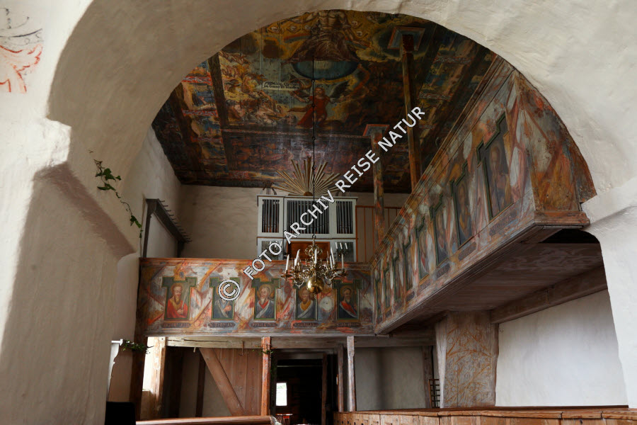 Altar, Bauwerk, Chor- Altarraum, Deckengemälde, Empore, Fresko, Gebäude, Gebäudeteil, Gegenstand, Gemälde, Kirche, Kronleuchter, Kultur, Kunst, Leuchtmittel, Sakralbau, Steinkirche,