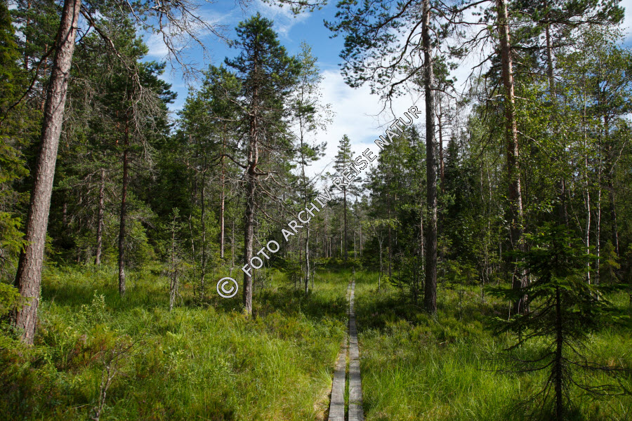 Baum, Baumstamm, Bauwerk, Farbe, Feuchtgebiet, Flora, Holzplanken, Holzsteg, Kindla, Landschaft, Naturschutzgebiet, Ort, Steg, Wald, grün,