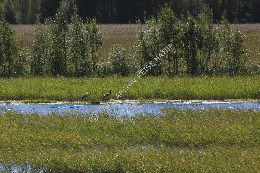Dalarna, Fauna, Flachwasserzone, Flora, Gras, Kranich, Grus grus, Kranichvogel, Gruiformes, Landschaft, Schilfrohr , Phragmites australis, Schweden, Sollerön, Süßgras, Vogel,