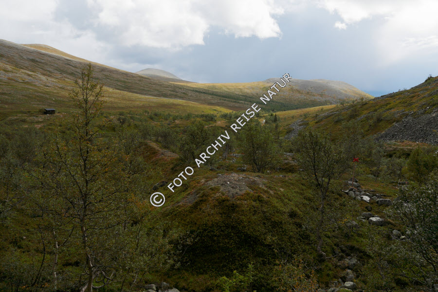 Baum, Bauwerk, Berg, Berghütte, Birke, Betula, Birkengewächs, Felsen, Fjell, Fjellbirke, Betula pubescens, Flora, Gebäude, Geröll, Hütte, Landschaft, Material, Nationalpark, Ort, Stein, Sånfjället,