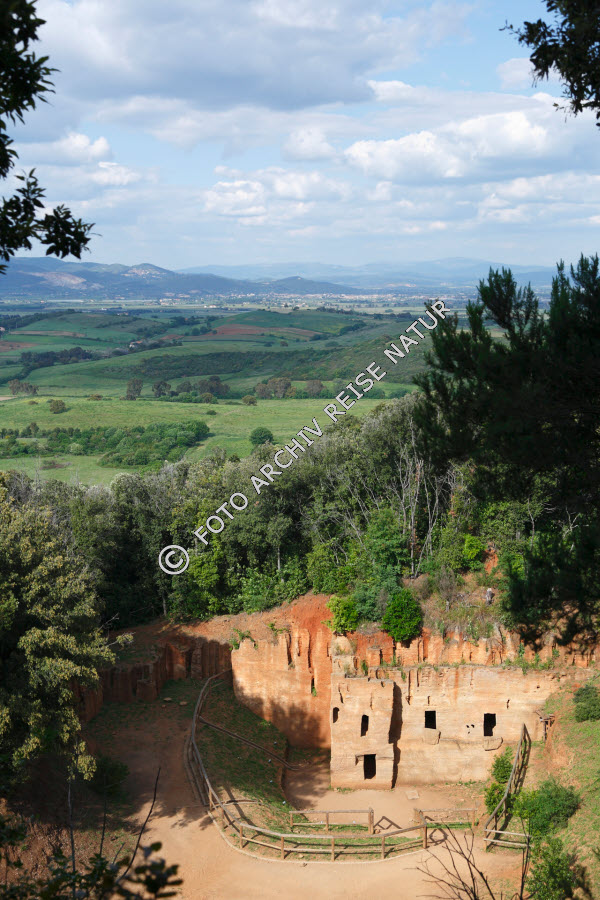 Ethnologie, Etrusker, Feld, Felsen, Felswand, Friedhof, Grab, Höhlengrab, Hügel, Hügelland, Italien, Kultur, Kulturlandschaft, Landschaft, Material, Nekropole, Ort, Stein, Toskana, Volk, Wald, Wetter, Klima, Wissenschaft, Wolke,