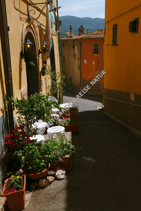 Bauwerk, Blume, Castagneto Carducci, Dorfstraße, Flora, Gaststätte, Gebäude, Haus, Italien, Ort, Steinhaus, Straße, Toskana, Trattoria, Verkehrsweg,
