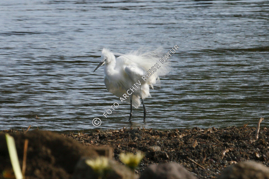 Farbe, Fauna, Gewässer, Gradoli, Italien, Lago di Bolsena, Landschaft, Latium, Reiher, See, Seidenreiher, Egretta garzetta, Vogel, weiß,