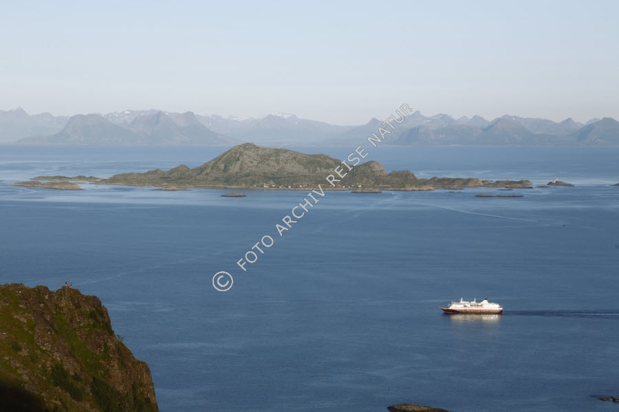 Insel Skrova / Hurtigrutenschiff kurz vor Svolvær