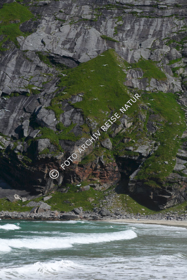 Buneset, Felsen, Gewässer, Landschaft, Lofoten, Material, Meer, Moskenesøy, Nordland, Nordmeer, Norwegen, Sandstrand, Stein, Strand,