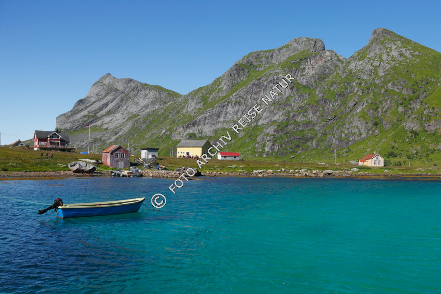 Berg, Fjord, Forsfjorden, Gewässer, Landschaft, Lofoten, Moskenesøy, Nordland, Norwegen, Vindstad,