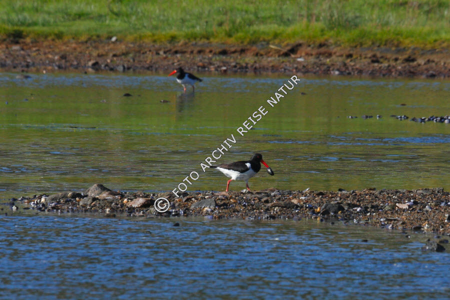 Austernfischer, Haematopus ostralegus, Bodden, Fauna, Felsen, Flora, Geröll, Gewässer, Gras, Knutstad, Landschaft, Lofoten, Material, Nordland, Norwegen, Stein, Vestvågøy, Vogel, Watvogel,