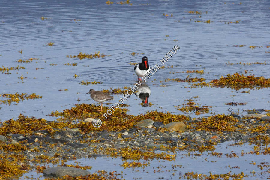 Keywords: Algen, Austernfischer, Haematopus ostralegus, Blasentang, Fucus vesiculosus, Fauna, Fjord, Flora, Gewässer, Jungtier, Landschaft, Norwegen, Ramfjorden, Rotschenkel, Tringa totanus, Schnepfenvogel, Seetang, Sørbotn, Troms, Vogel, Watvogel,