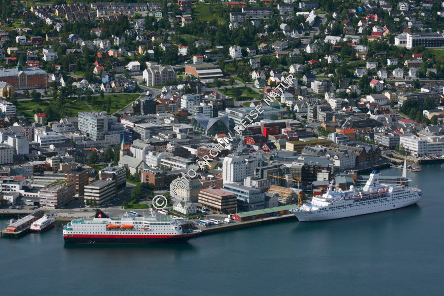 Hurtigruten- und Kreuzfahrtschiff im Hafen von Tromsø
