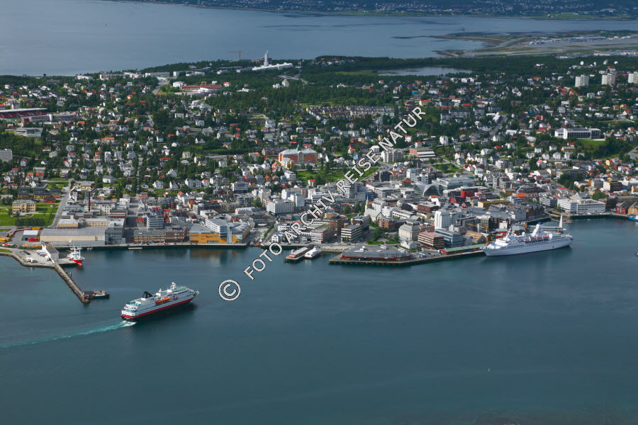 Bauwerk, Brücke, Gewässer, Hafen, Kulturlandschaft, Landschaft, Norwegen, Sandnessund, Stadt, Stadtansicht, Sund, Troms, Tromsø, Tromsøsund, Verkehrsweg,