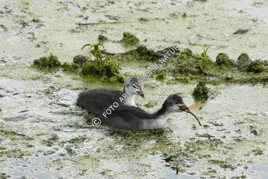 Zwei Blässhuhn-Jungtiere am Hornborgasjön bei Fågeludden