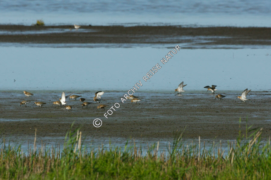 Alpenstrandläufer, Calidris alpina, Deutschland, Fauna, Flora, Gewässer, Gras, Grüner Brink, Insel Fehmarn, Landschaft, Naturschutzgebiet, Ort, Schleswig-Holstein, Schnepfenvogel, See, Strandsee, Vogel, Watvogel,