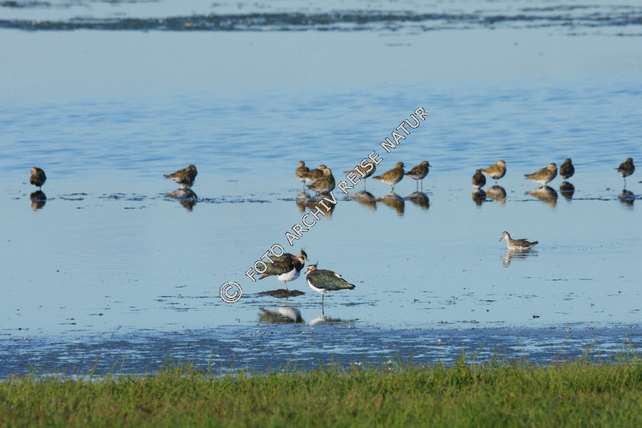 Deutschland, Fauna, Flora, Gewässer, Goldregenpfeifer, Pluvialis apricaria, Gras, Grüner Brink, Insel Fehmarn, Kiebitz, Vanellus vanellus, Landschaft, Naturschutzgebiet, Ort, Regenpfeifer, Schleswig-Holstein, See, Strandsee, Vogel, Watvogel,