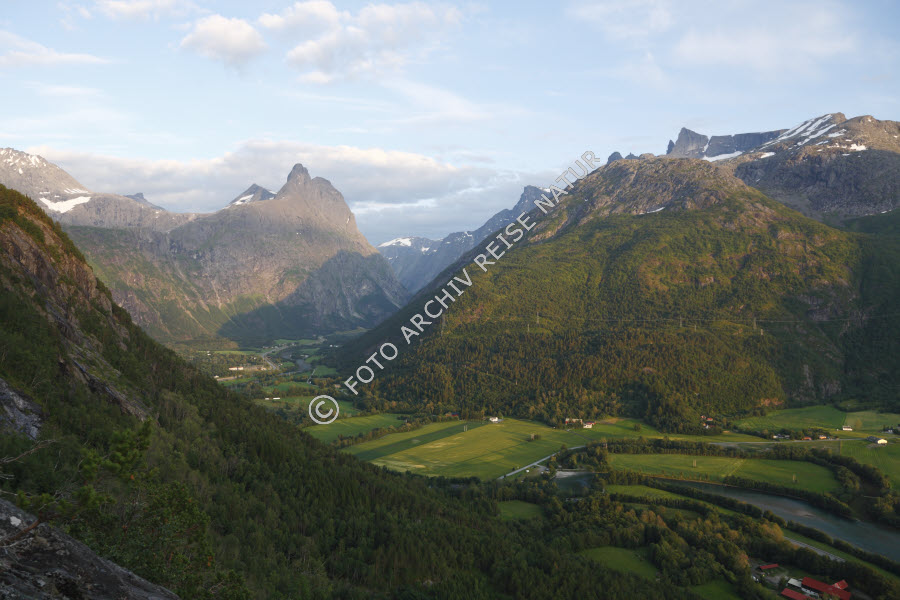 Keywords: Berg, Bergkette, Bergmassiv, Fluss, Gebirge, Gewässer, Kulturlandschaft, Landschaft, Mjelva, Møre og Romsdal, Norwegen, Rauma, Tal, Wald, Wiese, Åndalsnes, Rauma,