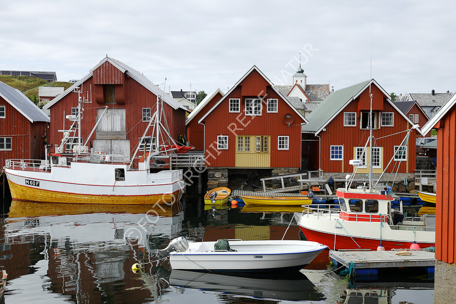 Bauwerk, Boot, Bud, Dorf, Fahrzeug, Fischerdorf, Fischereihafen, Fischkutter, Gebäude, Hafen, Haus, Holzhaus, Kirchturm, Kulturlandschaft, Møre og Romsdal, Norwegen, Turm, Verkehrsmittel, Wasserfahrzeug,