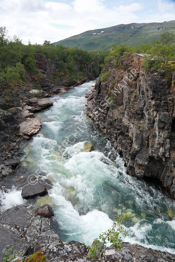 Abisko, Abiskojåkka, Felsen, Felswand, Fluss, Gebirge, Gewässer, Landschaft, Lappland, Material, Nationalpark, Norrbottens Län, Ort, Schlucht, Schweden, Stein, Tal, Wald,