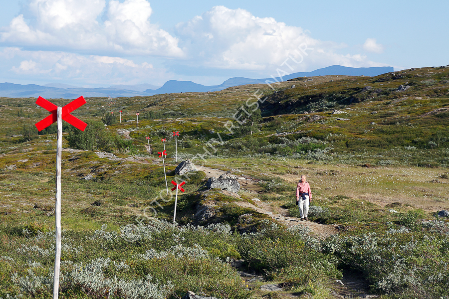 Aktivität, Bauwerk, Bewegen, Björkliden, Ereignis, Fjell, Gebirge, Gegenstand, Landschaft, Laufen, Norrbottens Län, Person, Schweden, Tätigkeit, Verkehrsweg, Wanderer, Wandern, Wanderweg, Weg, Wegweiser, Wegzeichen, Wetter, Klima, Wolke, Zeichen,