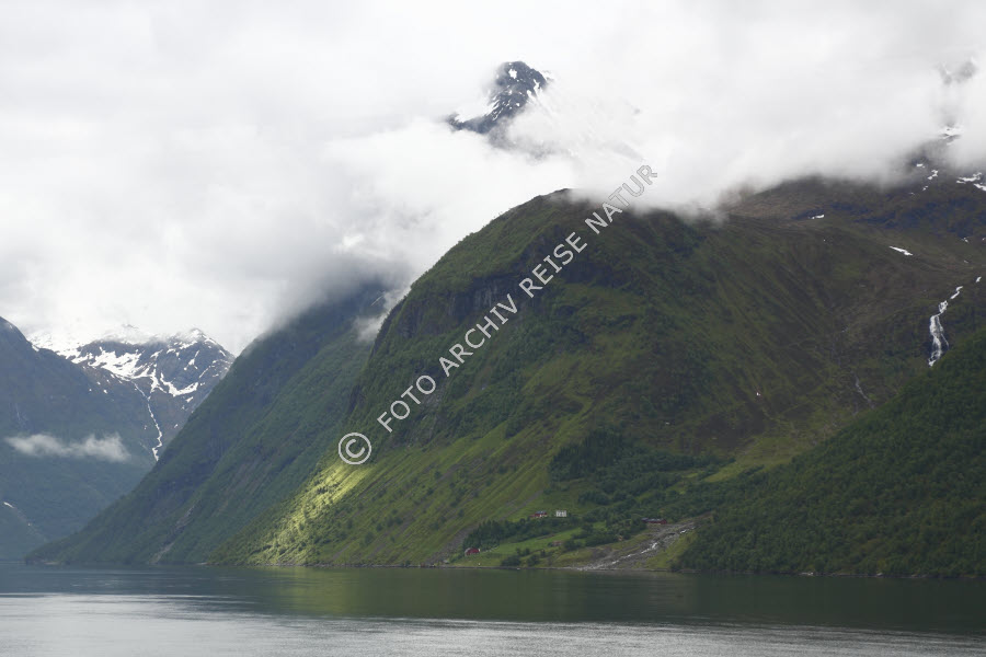Bach, Bauernhof, Bauwerk, Berg, Berghang, Fjord, Gebirgsbach, Gebäude, Gewässer, Gipfel, Hof, Landschaft, Møre og Romsdal, Norwegen, Storfjorden, Sæbø, Wiese, Wiesenhang,