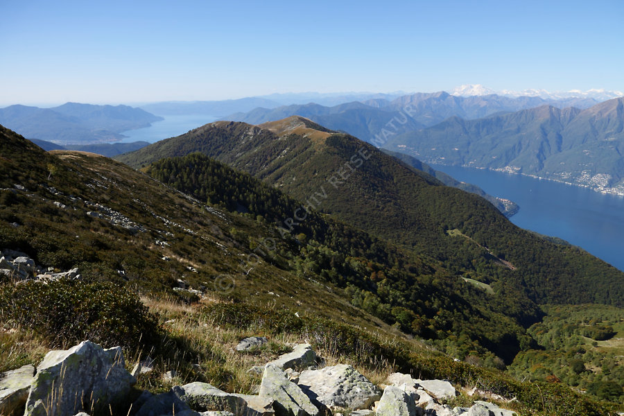 Keywords: Berg, Bergkette, Bergwald, Gambarogno, Gebirge, Gewässer, Gipfel, Gridone, Lago Maggiore, Landschaft, Monte Rosa, See, Wald,