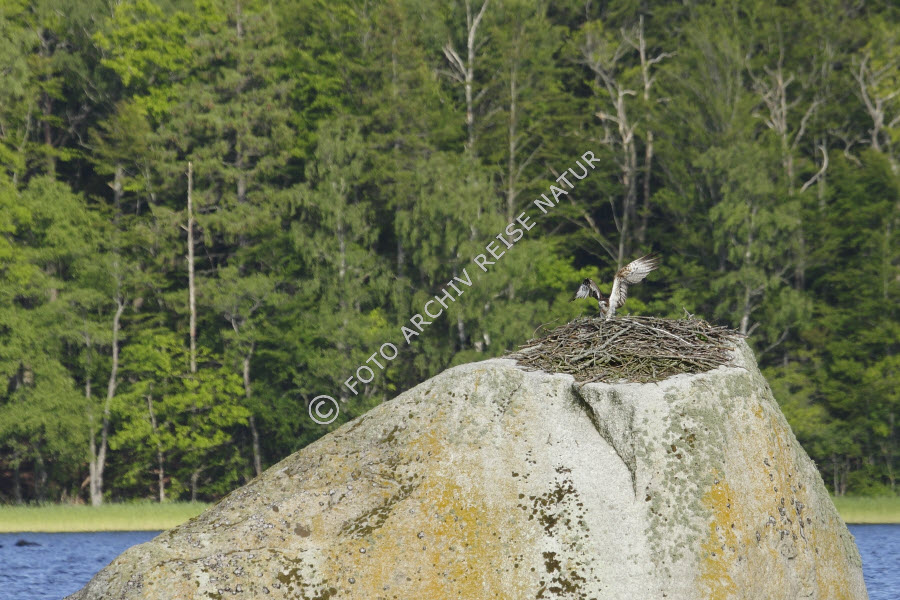 Adlerhorst, Agnäs, Fauna, Felsblock, Felsen, Fischadler, Pandion haliaetus, Greifvögel, Material, Naturschutzgebiet, Nest, Ort, Schweden, Småland, Stein, Tierbau, Vogel,