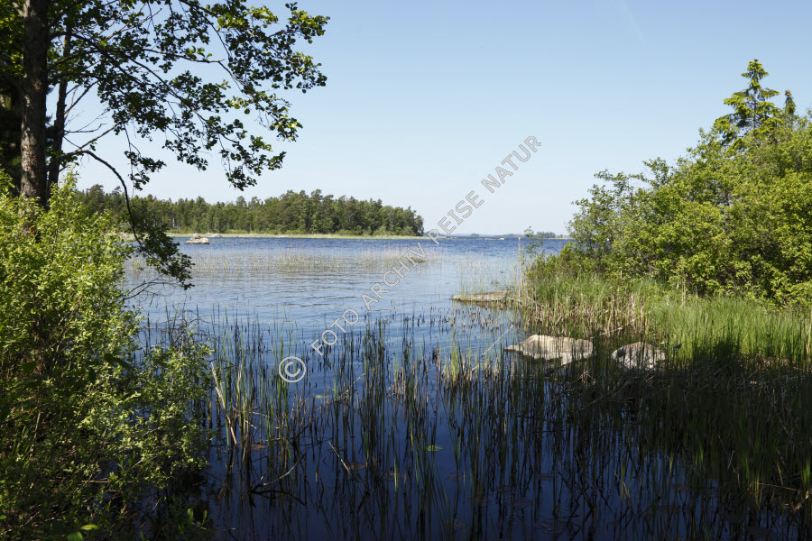 Baum, Birkengewächs, Flachwasserzone, Flora, Gewässer, Gras, Landschaft, Schilfrohr , Phragmites australis, Schwarz-Erle, Alnus glutinosa, See, Süßgras, Wald, Åsnen,
