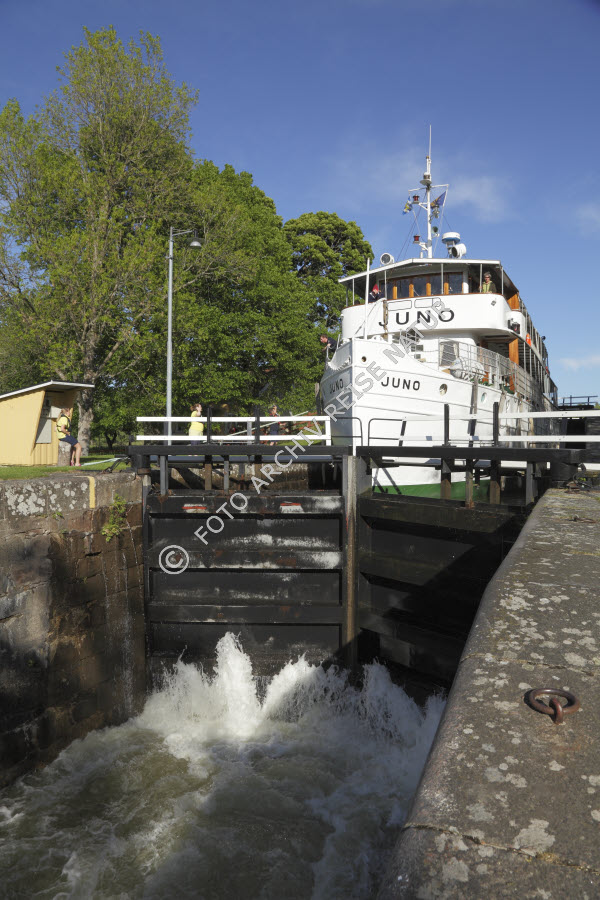 Ausflugsschiff in der Götakanalschleuse Riksberg