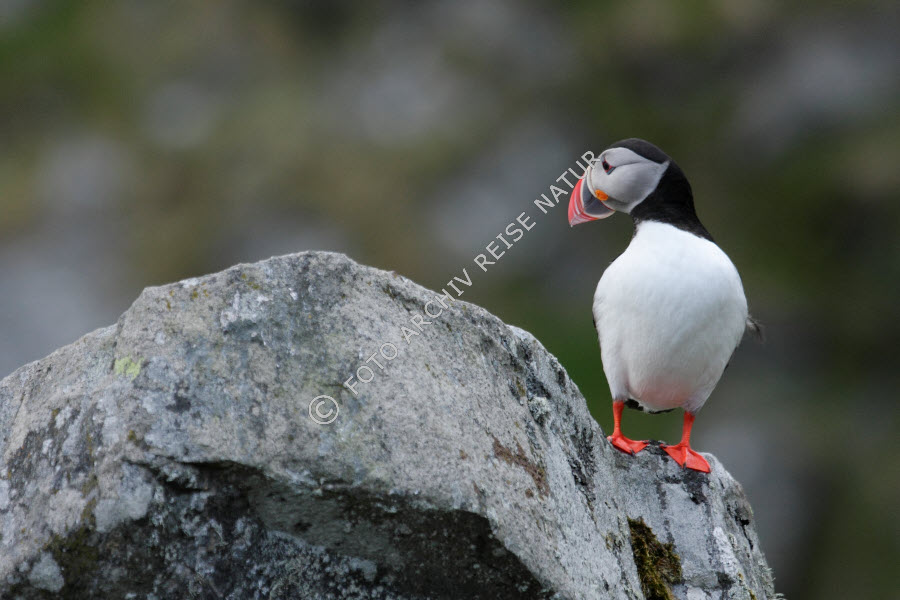 Alkenvögel, Fauna, Felsblock, Felsen, Goksøyr, Insel, Insel Runde, Landschaft, Material, Møre og Romsdal, Norwegen, Papageitaucher, Fratercula arctica, Stein, Vogel,