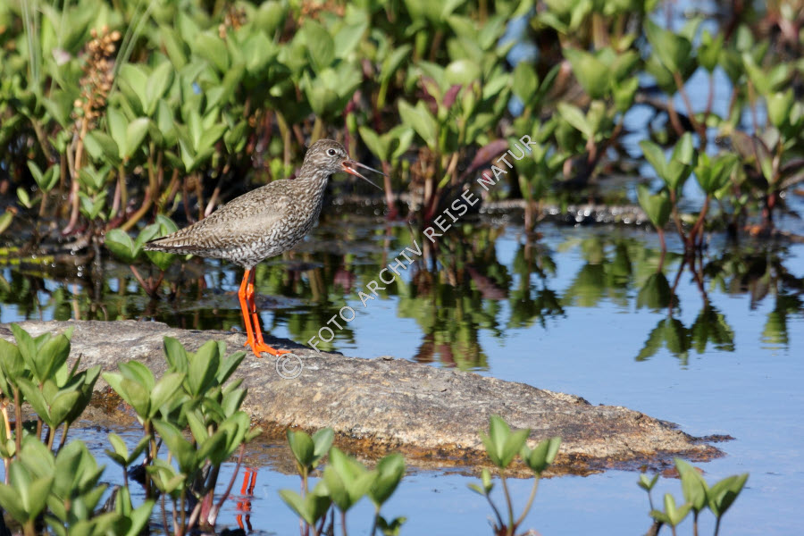 Austvågøya, Fauna, Feuchtgebiet, Gewässer, Landschaft, Lofoten, Moortümpel, Nordland, Norwegen, Rotschenkel, Tringa totanus, Sandsletta, Schnepfenvogel, Tümpel, Vatnfjord, Vogel, Watvogel,