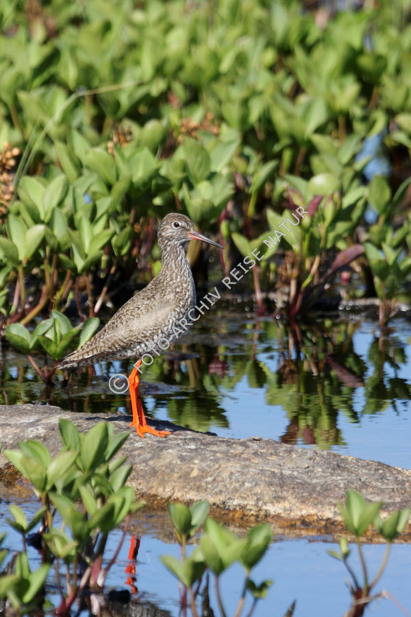 Austvågøya, Fauna, Feuchtgebiet, Gewässer, Landschaft, Lofoten, Moortümpel, Nordland, Norwegen, Rotschenkel, Tringa totanus, Sandsletta, Schnepfenvogel, Tümpel, Vatnfjord, Vogel, Watvogel,