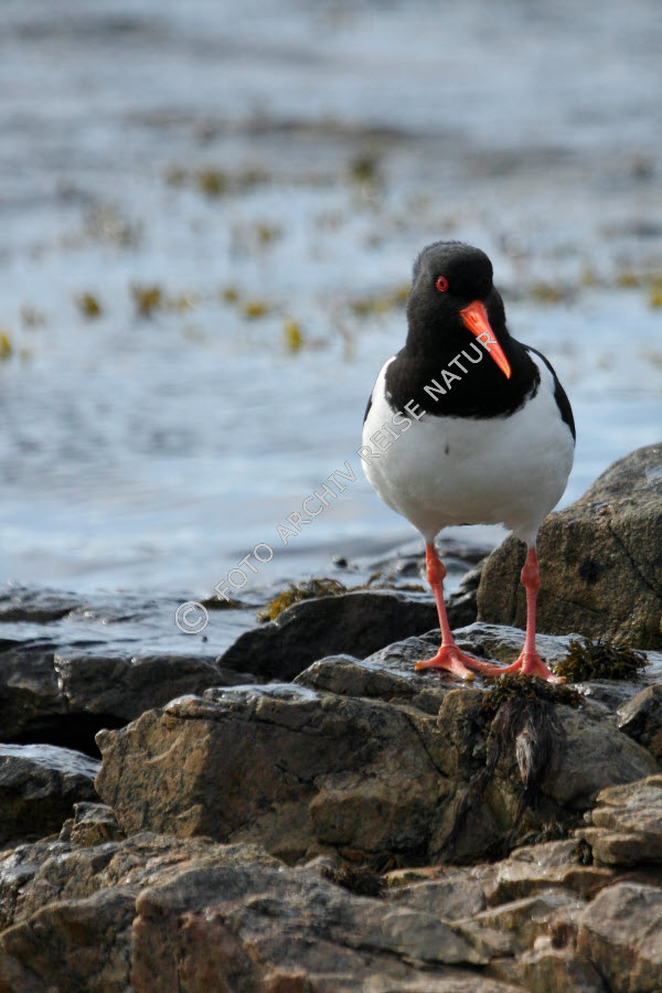 Austernfischer, Haematopus ostralegus, Fauna, Felsenstrand, Flakstad, Flakstadøy, Küste, Landschaft, Lofoten, Nordland, Norwegen, Strand, Vogel, Watvogel,