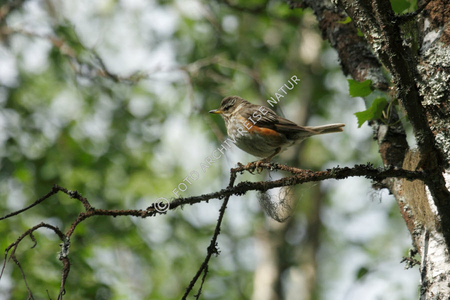 Arjeplog, Arvidsjaur, Baum, Birke, Betula, Birkengewächs, Birkenstamm, Drosselvögel, Fauna, Flora, Lamburträsk Naturreservat, Naturschutzgebiet, Norrbottens Län, Ort, Rotdrossel, Turdus iliacus, Schweden, Vogel,