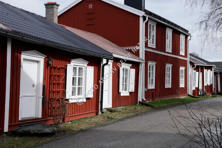 Bauwerk, Dorf, Dorfstraße, Farbe, Gammelstad, Gasse, Gebäude, Haus, Holzhaus, Kirchdorf, Kultur, Kulturlandschaft, Luleå, Norrbottens Län, Schweden, Straße, Verkehrsweg, Weltkuturerbe, historisch, rot, weiß,