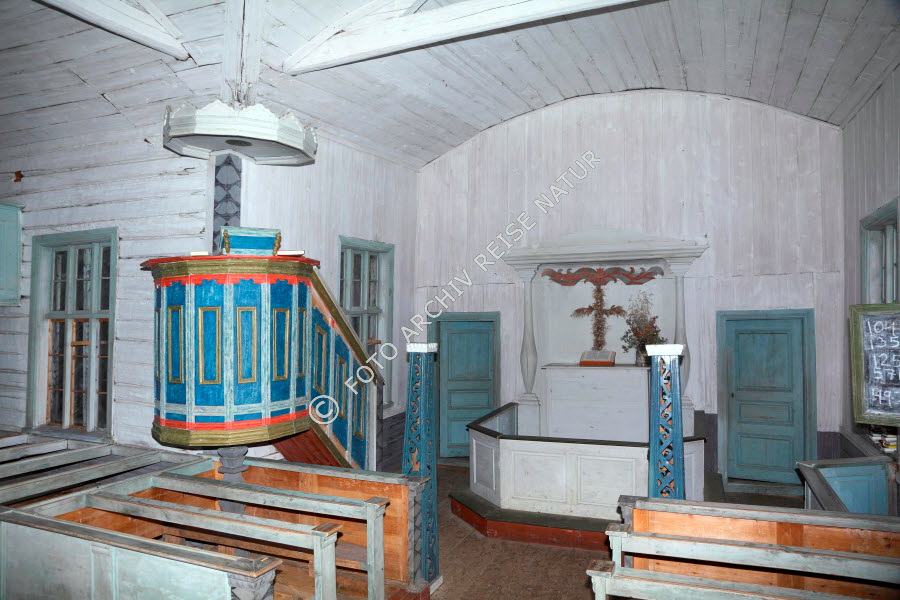 Innenraum der Einödkirche von Pielpajärvi bei Inari