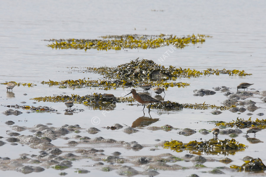Keywords: Alpenstrandläufer, Calidris alpina, Fauna, Finnmark, Fjord, Gewässer, Küste, Landschaft, Lappland, Norwegen, Pfuhlschnepfe, Limosa lapponica, Schlick, Schnepfenvogel, Vadsø, Varanger, Vogel, Værangsfjorden, Watt, Watvogel,