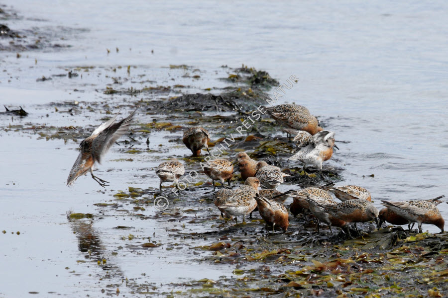 Barentssee, Ebbe, Ekkerøy, Fauna, Finnmark, Gewässer, Gezeiten, Knutt, Calidris canutus, Küste, Landschaft, Lappland, Meer, Norwegen, Schlick, Schnepfenvogel, Varanger, Vogel, Watt, Watvogel,