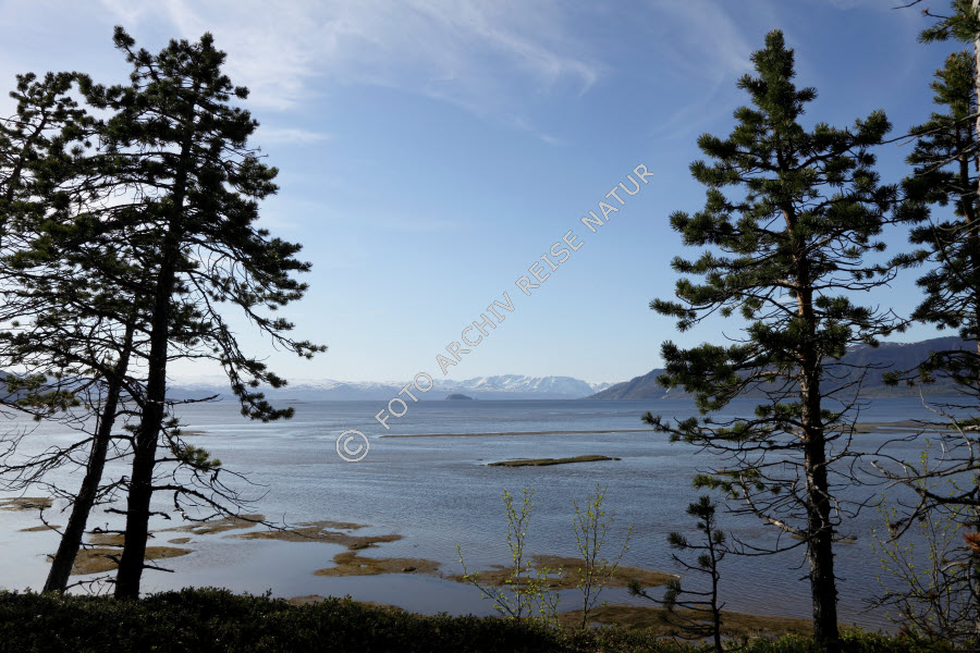 Alta, Altafjord, Baum, Bauwerk, Düne, Finnmark, Fjord, Flora, Gewässer, Kiefer, Pinus, Kieferngewächs, Küste, Landschaft, Lappland, Norwegen, Steilküste, Verkehrsweg, Wanderweg, Weg,